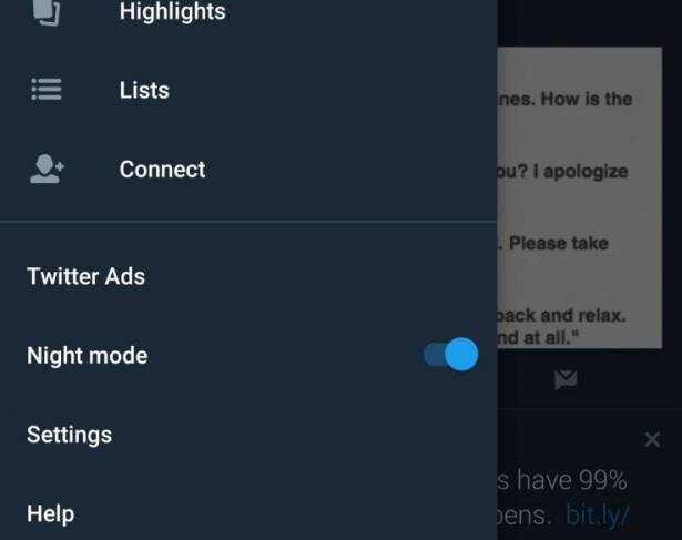 - اضغط بعد ذلك على خيار Night Mode حيث سيكون في شكل زر سيحتاج للتفعيل.
