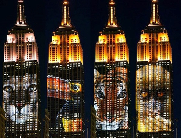 الاقتصادي- وكالات- بث مبنى "إمباير ستيت" الشهير فى نيويورك فيديو بصور للحيوانات المهددة بالانقراض فى سابقة يقال إنها الأولى من نوعها، ومن بينها صورة الأسد "سيسيل" الذى قتل الشهر الماضى على يد صياد أمريكى وأثار غضبًا دوليًا واسعًا.