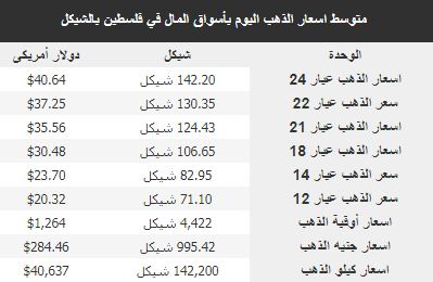 رام الله - الاقتصادي - جاءت اسعار غرام الذهب اليوم الثلاثاء في فلسطين لعيارات 18.21.22.24 على النحو التالي : -