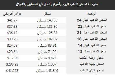 رام الله - الاقتصادي -جاءت اسعار غرام الذهب اليوم الأربعاء في فلسطين لعيارات 18.21.22.24 على النحو التالي : -