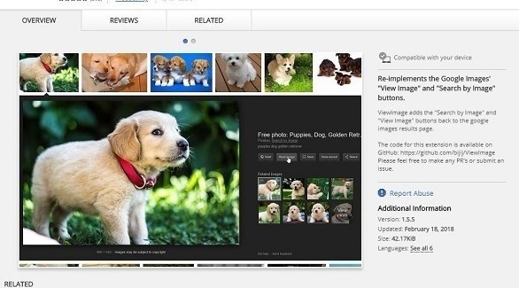 وبإمكان المستخدمين إعادة زر "مشاهدة الصور" أو "View image" مرة أخرى لنتائج بحث غوغل، وذلك عن طريق تثبيت هذه الإضافة لمتصفحي غوغل كروم أو أوبر، بعدها سيتمكن المستخدمين من مشاهدة الزر ببساطة.