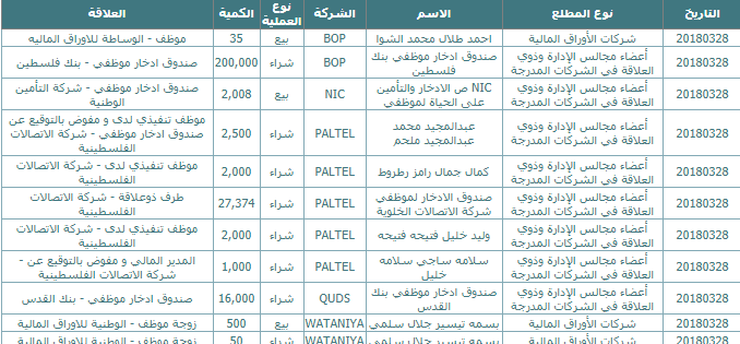 وتالياً، أبرز التداولات التي تمت اليوم الاربعاء، من طرف المطلعين: