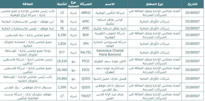 وتالياً، أبرز التداولات التي تمت اليوم الاثنين من طرف المطلعين:
