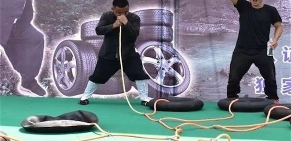وحقق تانغ فيهيو البالغ من العمر 43 عاماً إنجازاً رائعاً عبر نفخ 12 إطار سيارة باستخدام فتحة أنف واحدة في غضون دقيقتين ونصف فقط، خلال فعالية أقيمت مؤخراً في نانجيانج جراند كانيون.
