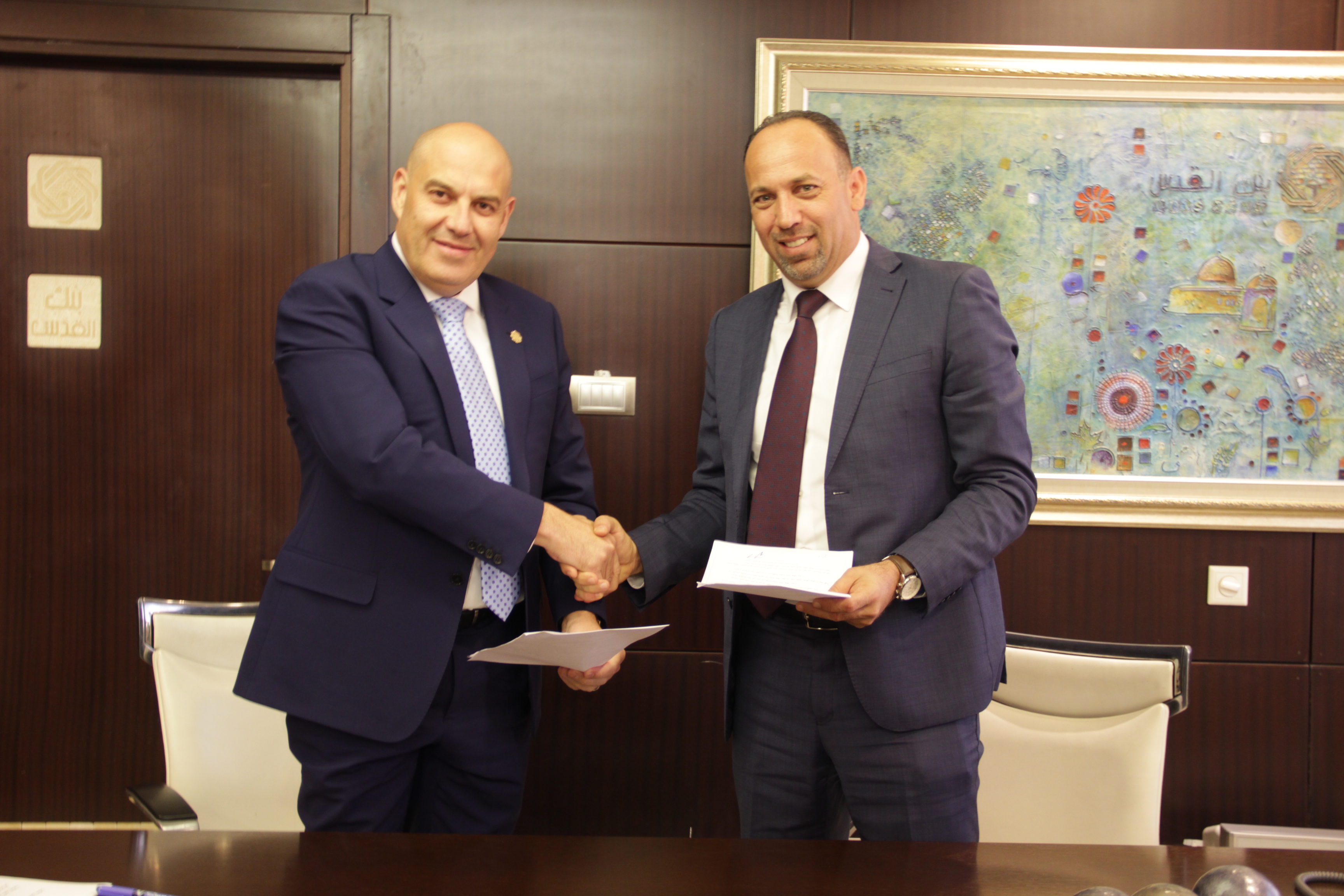 جاء ذلك خلال توقيع مذكرة تفاهم تضمنت إتفاق الطرفين على دخول بنك القدس كشريك إستراتيجي، وإستحوذه على 35% من أسهم الشركة والتي ينتج عنها رفع رأس المال العام للشركة وبالتالي توطيد العلاقة بين الطرفين بمختلف المجالات الأمر الذي يؤدي إلى تطوير أعمال الشركة وفتح السوق الخارجي له وإستثمار العقول من الخرجين الجدد.