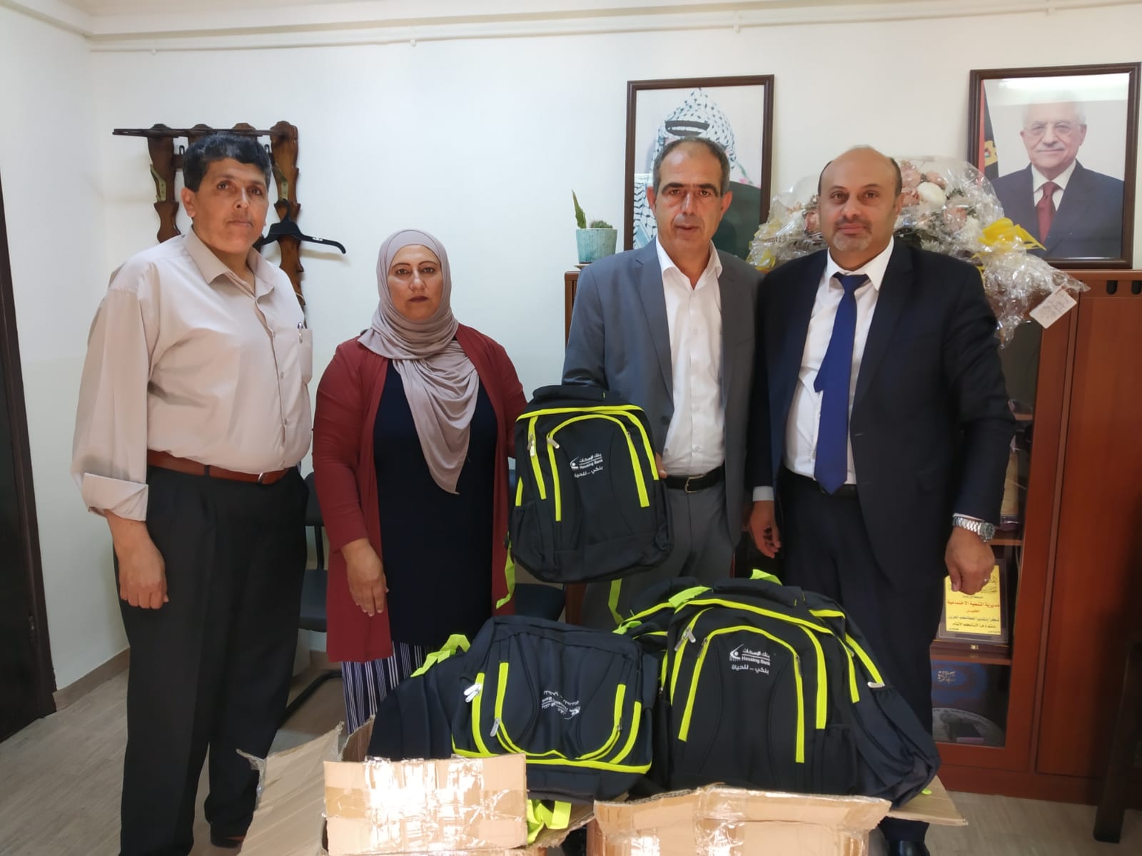 بنك الإسكان يساهم بتوزيع حقائب مدرسية في الخليل
