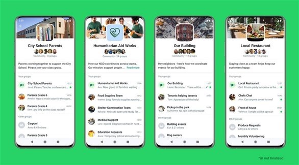ولكن لن يكون متاحاً لمستخدمي واتساب البحث بأنفسهم عن "المجتمعات" التي يرغبون في الانضمام إليها، بل ينبغي أن يكونوا ضمن مجموعة، وبالتالي يضيفهم مشرف على المجتمع.