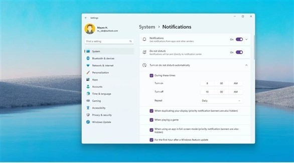 وكالات - الاقتصادي - قالت مجلة "كمبيوتر بيلد" إن نظام التشغيل ويندوز 11 يشتمل على ميزة "عدم الإزعاج" التي تتيح العمل في هدوء وتركيز بكتم صوت الإشعارات.