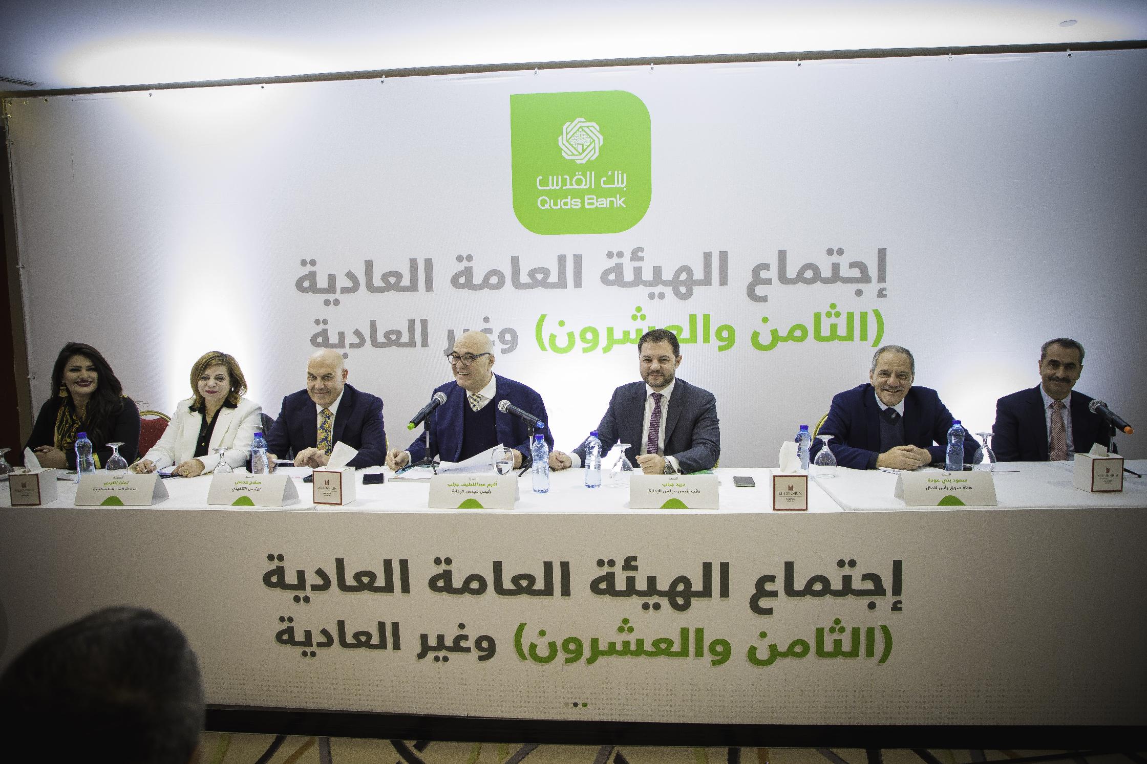 وترأس الاجتماعان اللذان عُقدا بواسطة تقنية الاتصال المرئي في كل من مدينة رام الله وغزة وعمان، رئيس مجلس إدارة بنك القدس أكرم عبد اللطيف جراب وبحضور عدد من أعضاء مجلس الإدارة والرئيس التنفيذي للبنك صلاح هدمي، ومساهمين يحملون أسهماً بالأصالة والإنابة والوكالة يشكلون حوالي (85%) من رأس المال، كما حضر الاجتماع مراقب عام الشركات في رام الله وفي غزة ومندوب سلطة النقد الفلسطينية، ومدققي حسابات البنك الخارجين، وممثل عن هيئة سوق رأس المال والمستشارين القانونين.