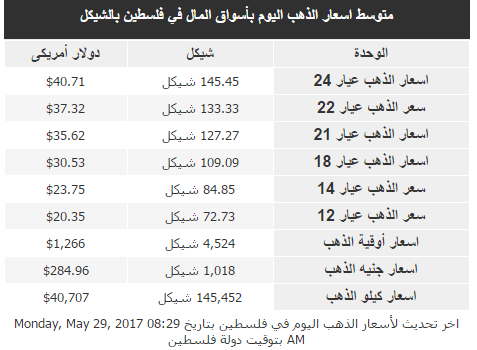 رام الله - الاقتصادي - جاءت اسعار غرام الذهب، اليوم الاثنين، في الاسواق المحلية، لعيارات 18.21.22.24 على النحو التالي: -