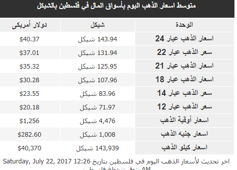 اسعار الذهب في فلسطين